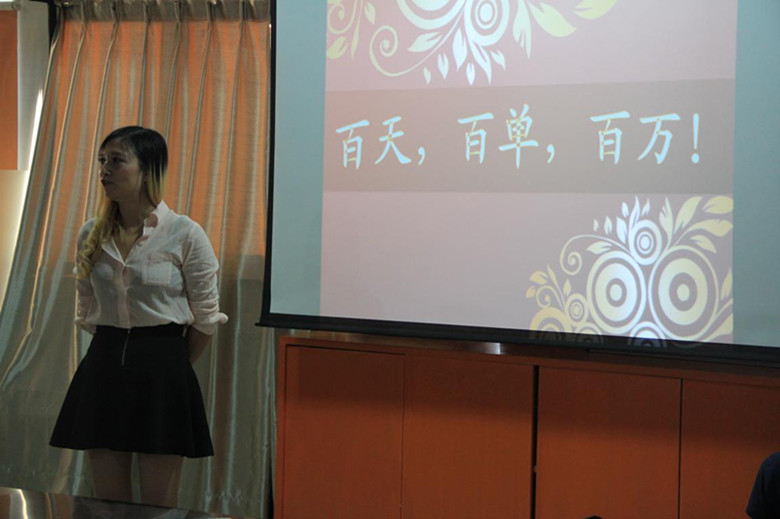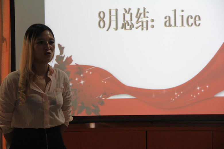 总结过去才能够让我们在未来的工作中有更大的进步,在大会上,东莞天助总监Alica对过去8月份工作作出总结,指出工作中上的不足之处,同时对新的一月的工作内容提出新的要求,明确了九月份的工作目标:百天、百单、百万。